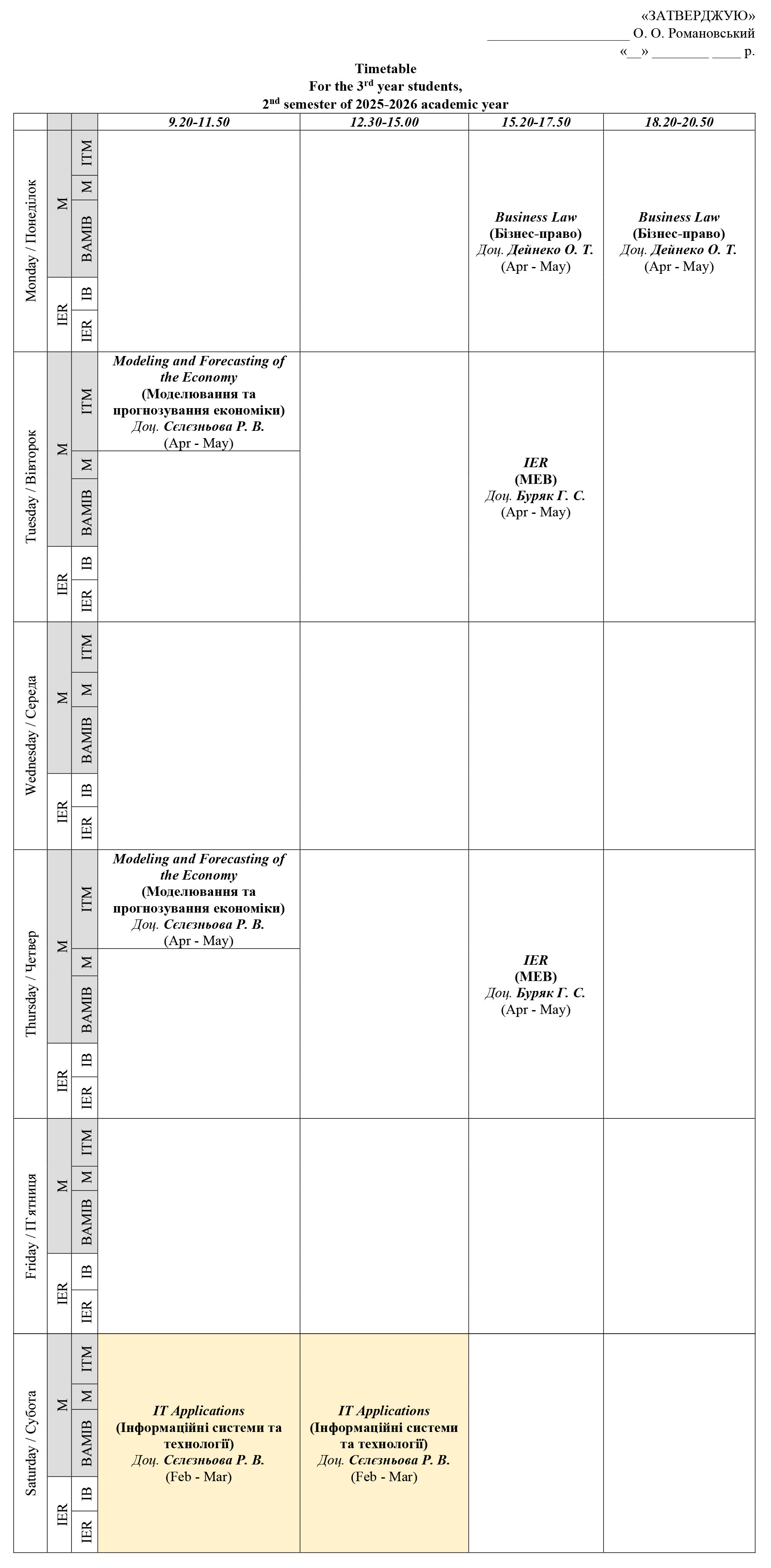 Timetable for 3rd year students